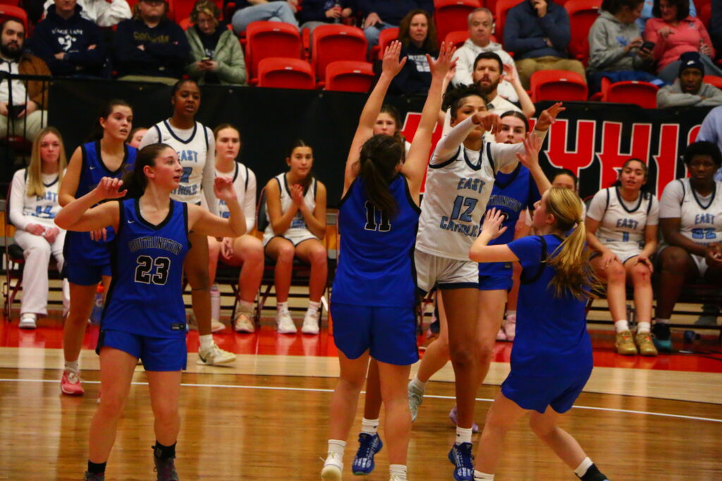 Southington led by 20 at halftime and added to the lead with two quick baskets out of the gate to open the second half. The Knights used a stifling defense to hold the Eagles to their second lowest point total of the season. The loss snapped an 18-game win streak for East Catholic.