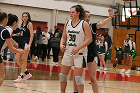 The two teams battled closely through the first quarter and a half before the Warriors went on a 14-5 run to close the half. Northwest Catholic stayed even for much of the second half but was never able to overcome the deficit as the Warriors countered every attempt at a run by the Lions.  With high scoring Abigail Casper was sidelined by injury in the third quarter and the Lions were not able to find the scoring punch needed to close the deficit. Casper had 16 points and Maeve Stanton led the Lions with 18.